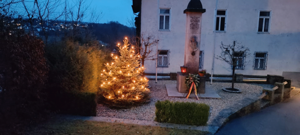 Wie jedes Jahr pünktlich zum 1. Advent, wurde auch in diesem Jahr wieder ein Christbaum am Kriegerdenkmal der Gemeinde Niederviehbach aufgestellt.